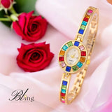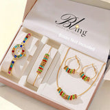 BLING 5pcs Colored Rhinestone Watch Bracelet Necklace Earring Set