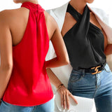 GBOSS Vibrant Satin Criss Cross Halter Elegant Top
